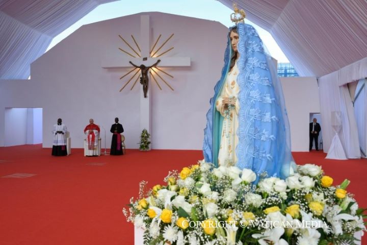 Như Đức Giám Mục Sumbelelo đã chỉ ra, đền thờ này, được dâng hiến cho Đức Mẹ Vô Nhiễm Nguyên Tội, đã được tự phát “đổi tên”bởi các tín hữu thành Đền “Mẹ của Trái Tim”. Đó là một danh hiệu đẹp đẽ, khiến chúng ta suy gẫm về trái tim của Đức Mẹ Maria: một trái tim trong sạch và khôn ngoan, có khả năng trân trọng và suy tư về những sự kiện phi thường trong cuộc đời của Con Thiên Chúa (xem Lc 2:19, 51). Cùng nhau cầu nguyện, chúng ta cũng đã làm như vậy, để cho Đức Mẹ hướng dẫn chúng ta trong việc suy niệm Chúa Giêsu. Chúng ta đã cùng Mẹ tìm lại những khoảnh khắc khác nhau trong cuộc đời của Con Mẹ, để nuôi dưỡng trong chúng ta một tình yêu phổ quát như tình yêu của Mẹ (xem Rosarium Virginis Mariae, 11).