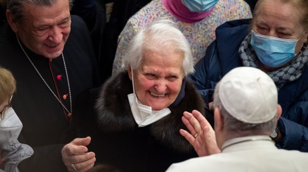 Nhưng tương lai được xây dựng không chỉ bằng việc có con cái. Còn thiếu một phần rất quan trọng nữa: ông bà. Ngày nay có tục lệ giấu ông bà đi xa, gửi họ về nhà an dưỡng. Bây giờ mọi thứ đã thay đổi một chút về chuyện nghỉ hưu – thật không may là đã thay đổi – nhưng đó là xu hướng: loại bỏ ông bà. Một câu chuyện thú vị hiện lên trong tâm trí tôi. Có một gia đình tốt đẹp, nơi ông nội sống cùng họ. Nhưng theo thời gian, ông nội già đi, và khi ăn, ông làm bẩn cả mình… Và người cha đã đóng một chiếc bàn nhỏ trong bếp để ông nội có thể dùng bữa ở đó và họ có thể mời mọi người đến. Một ngày nọ, anh về nhà và thấy một đứa trẻ đang làm việc với gỗ. "Con đang tạo ra cái gì vậy?" “Một cái bàn, bố ạ”. "Nhưng tại sao?" “Cho bố, khi bố già”. Xin vui lòng, đừng quên ông bà. Khi tôi đến thăm rất nhiều nhà dưỡng lão ở giáo phận khác, tôi thường hỏi ông bà – tôi đang nghĩ đến một trường hợp: “Ông có bao nhiêu đứa con?” "Nhiều". "À! Giỏi. Và họ có đến thăm bạn không? “Ừ, họ đến thường xuyên”. Khi tôi chuẩn bị rời đi, cô y tá nói với tôi: “Họ không bao giờ đến”. Ông bà cô đơn. Ông bà bị rẫy bỏ. Đây là hành vi tự sát về mặt văn hóa. Tương lai được tạo nên bởi người trẻ và người già cùng nhau: lòng can đảm và ký ức cùng nhau. Làm ơn, khi nói về nguồn gốc, tức là tương lai, chúng ta cũng hãy nói về ông bà, những người không phải là quá khứ: họ giúp đỡ cho tương lai. Xin hãy sinh con nhiều, nhưng cũng hãy chăm sóc ông bà. Rất quan trọng.