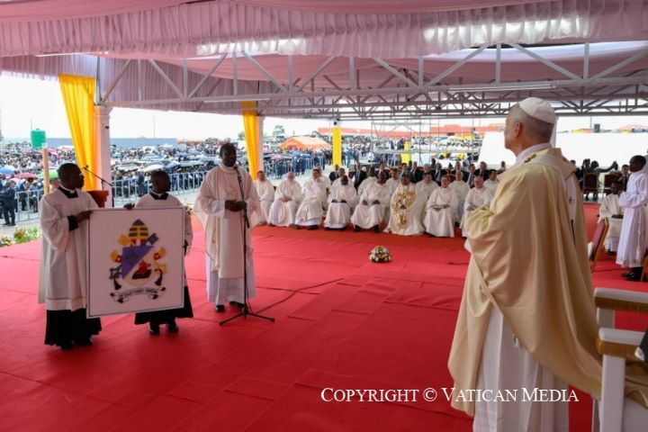 Các bạn thân mến, chứng tá của các vị tử đạo và các thánh khích lệ chúng ta và thúc đẩy chúng ta trên con đường hy vọng, hòa giải và hòa bình, trên đó hồng ân của Chúa trở thành trách nhiệm của người đứng đầu gia đình, trong cộng đồng Kitô giáo, trong xã hội dân sự. Cùng nhau bước đi, trong ánh sáng Tin Mừng, Giáo hội tại Angola phát triển theo sự sinh hoa kết trái thiêng liêng bắt đầu từ Bí tích Thánh Thể và tiếp tục trong sự chăm sóc toàn diện cho mỗi người và toàn thể dân tộc. Đặc biệt, sức sống của ơn gọi mà anh chị em trải nghiệm là dấu hiệu cho thấy anh chị em đang đáp lại hồng ân của Chúa, hồng ân luôn dồi dào cho những ai đón nhận bằng tấm lòng thanh khiết. Nhờ Bánh Sự Sống mà chúng ta cùng chia sẻ hôm nay, chúng ta có thể tiếp tục cuộc hành trình của toàn thể Giáo Hội, hướng đến Nước Thiên Chúa, nơi ánh sáng là đức tin và huyết mạch là lòng bác ái.