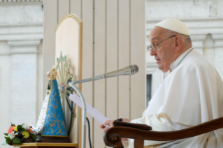 Khía cạnh thứ ba: ánh sáng. Chúa Giêsu nói rằng Người đến để “làm cho người mù trông thấy” (ibid.). Điều đáng chú ý là suốt trong toàn bộ Kinh thánh, trước Chúa Kitô, việc chữa lành một người mù chưa bao giờ xuất hiện. Trên thực tế, đó là một dấu hiệu đã được hứa hẹn sẽ đến với Đấng Mêxia. Nhưng ở đây không những chỉ là cái nhìn thể lý mà còn là ánh sáng cho phép anh chị em nhìn cuộc sống một cách mới mẻ. Có một việc "đến với ánh sáng", một việc tái sinh chỉ xảy ra với Chúa Giêsu. Nếu chúng ta nghĩ về nó, đây là cách cuộc sống Kitô hữu bắt đầu đối với chúng ta: với Bí tích Rửa tội, mà thời xưa được gọi một cách chính xác là "sự soi sáng". Và Chúa Giêsu ban cho chúng ta ánh sáng nào? Người mang đến cho chúng ta ánh sáng của quyền làm con cái: Người là Con yêu dấu của Chúa Cha, hằng sống muôn đời; và cùng với Người, chúng ta cũng là con cái của Thiên Chúa được yêu thương mãi mãi, bất chấp những lỗi lầm và khiếm khuyết của chúng ta. Khi đó cuộc sống không còn là một bước tiến mù quáng về phía hư vô, không: đây không phải là vấn đề của số phận hay may mắn. Đây không phải là thứ phụ thuộc vào cơ hội hay các vì sao, hay thậm chí là sức khỏe hay tài chính, không. Cuộc sống tùy thuộc vào tình yêu, vào tình yêu của Chúa Cha, Đấng chăm sóc chúng ta, những người con yêu dấu của Người. Thật tuyệt vời biết bao khi chia sẻ ánh sáng này với những người khác! Anh chị em có nghĩ rằng cuộc sống của mỗi người chúng ta - cuộc sống của tôi, cuộc sống của anh chị em, cuộc sống của chúng ta - là một hành vi tình yêu không? Đó có phải là một lời mời yêu thương không? Đây là điều tuyệt vời! Nhưng chúng ta thường quên điều này, khi đối đầu với những khó khăn, trước những tin xấu, thậm chí khi đối đầu - và điều này thật tồi tệ - tính thế gian, lối sống thế gian.